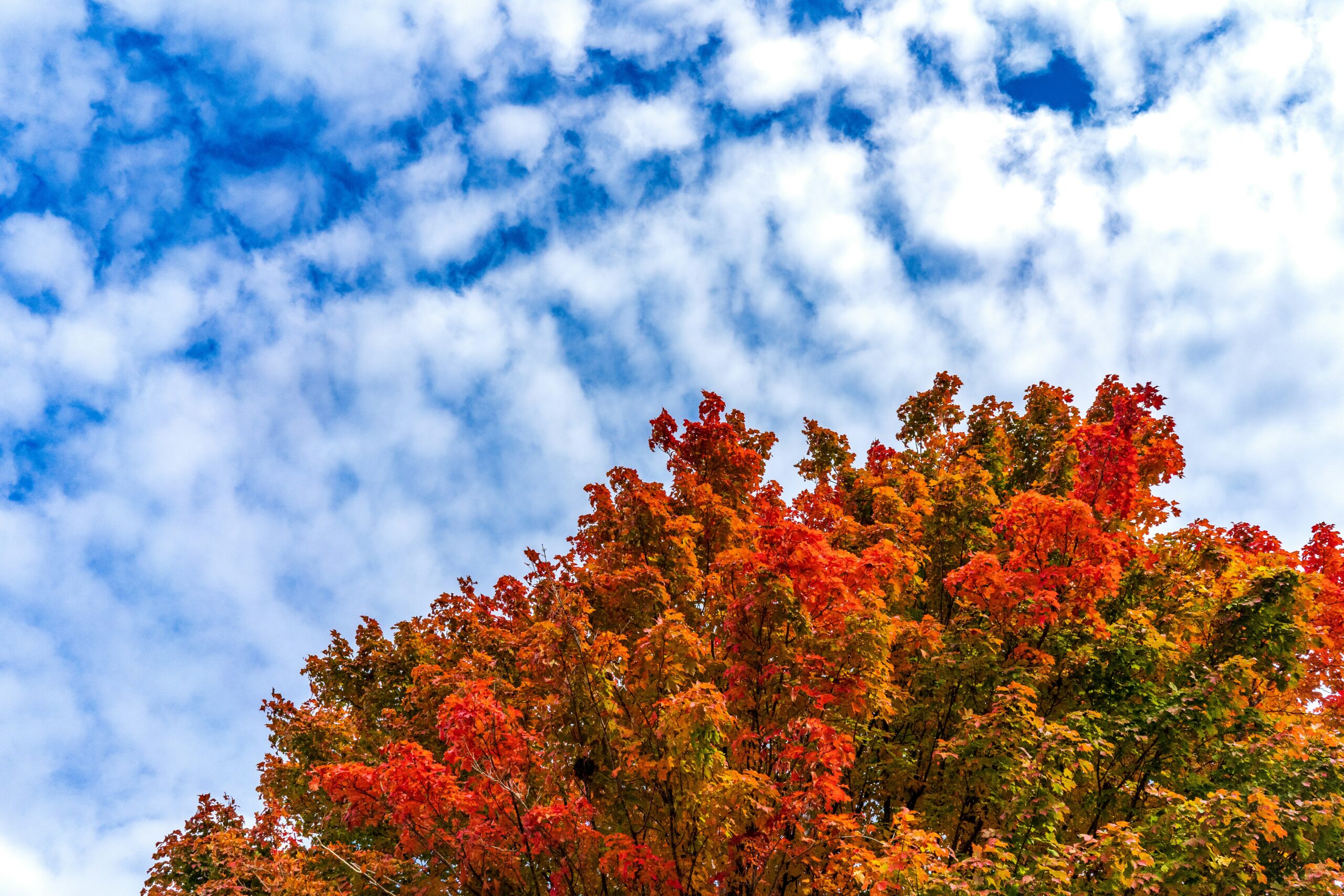 晴れの日が多いと光合成が活発になり、葉の中に多くの糖分が作られます。この糖分が夜の冷え込みでアントシアニンに変化することで、赤やオレンジの色が生まれます。