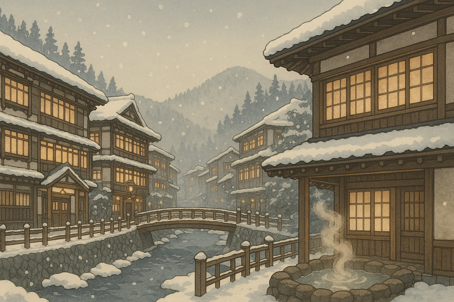 特に四万温泉は、“千と千尋の神隠し”の世界観に似ていると話題になった積善館が有名で、風情ある湯宿が点在しています。川沿いに雪が降る光景はまるで絵画のようで、寒い時期ほど魅力が増すスポットです。